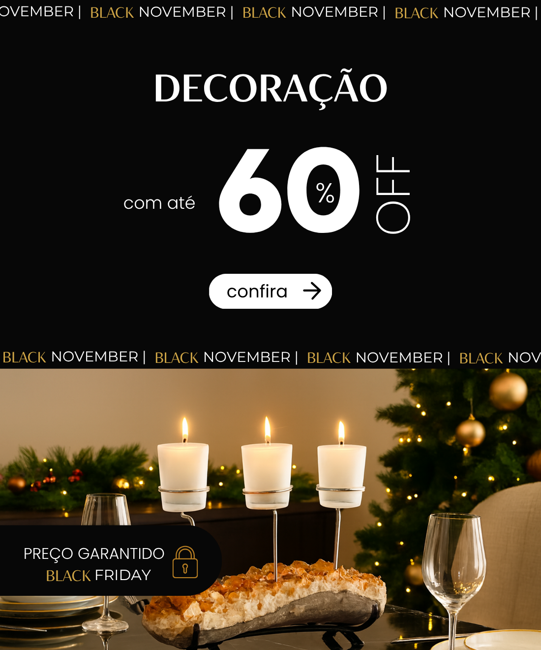 Castiçal Triplo com Drusa de Citrino e Suporte em Vidro Fosco Branco Base Metal Preto 2,709 kg