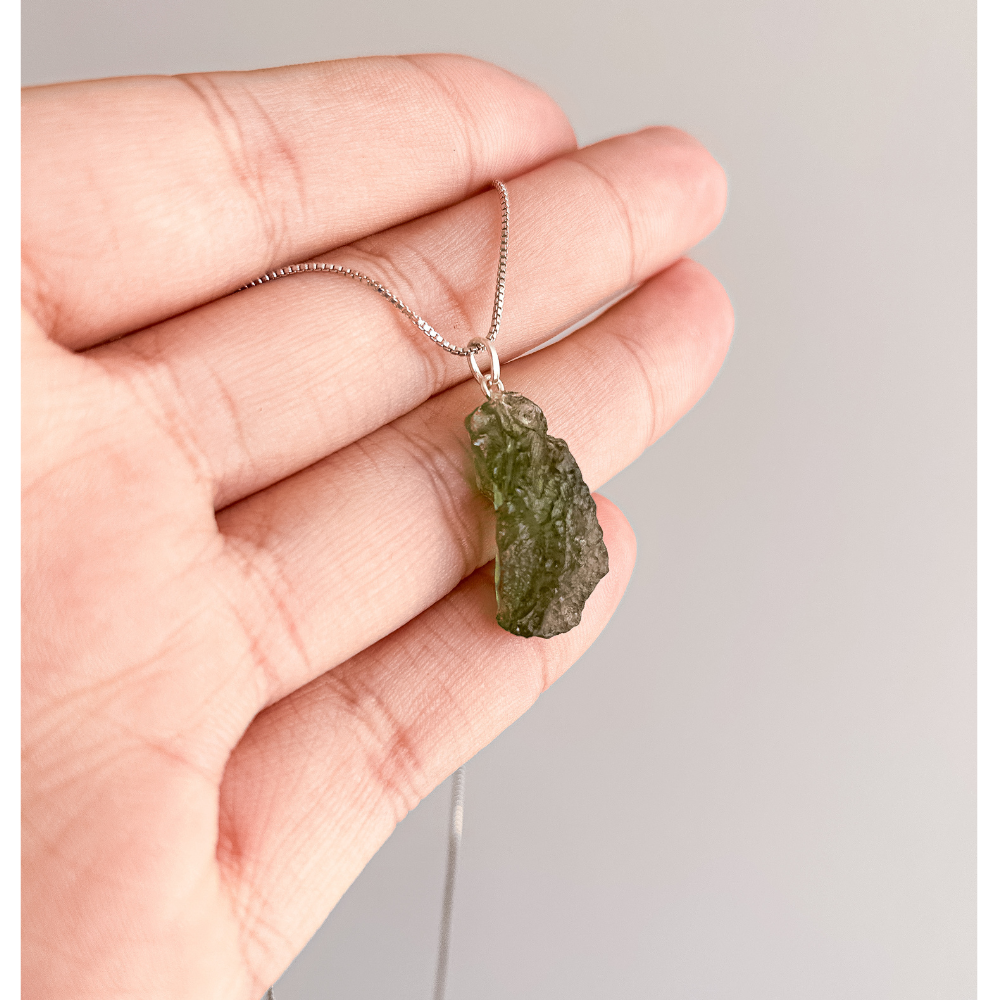 Pingente Moldavita Natural 15 Quilate Em Prata 950
