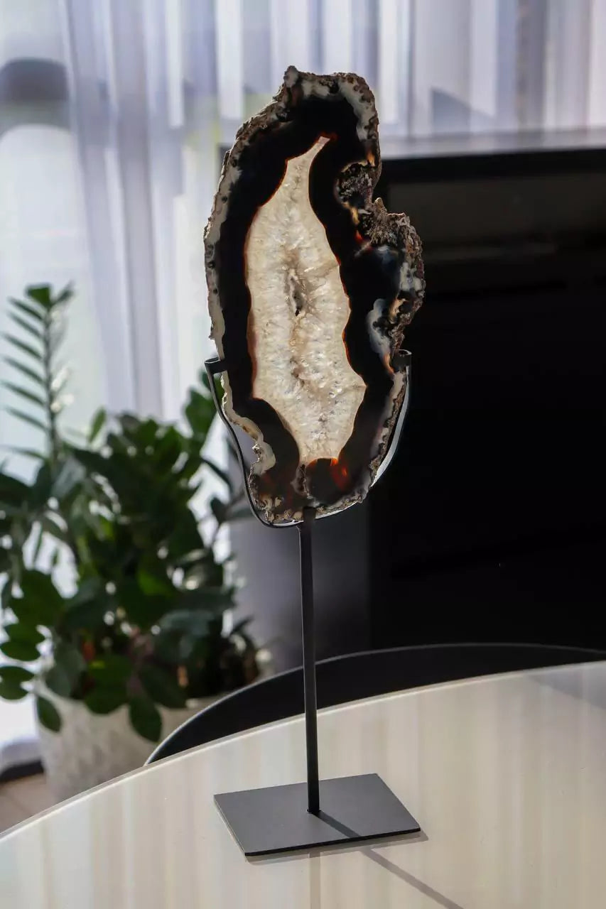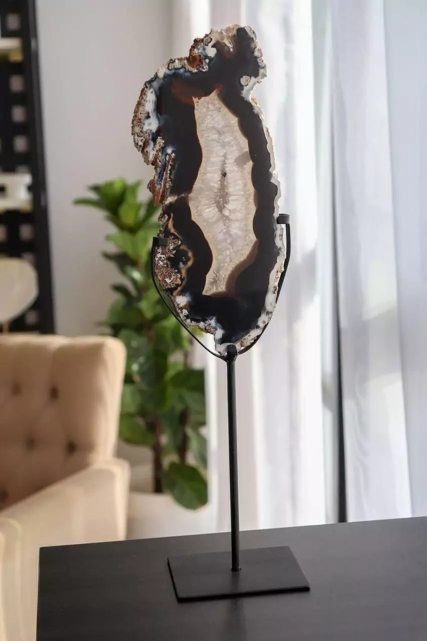 Chapa Ágata Natural na Base Metal Preta 940 gramas aprox.