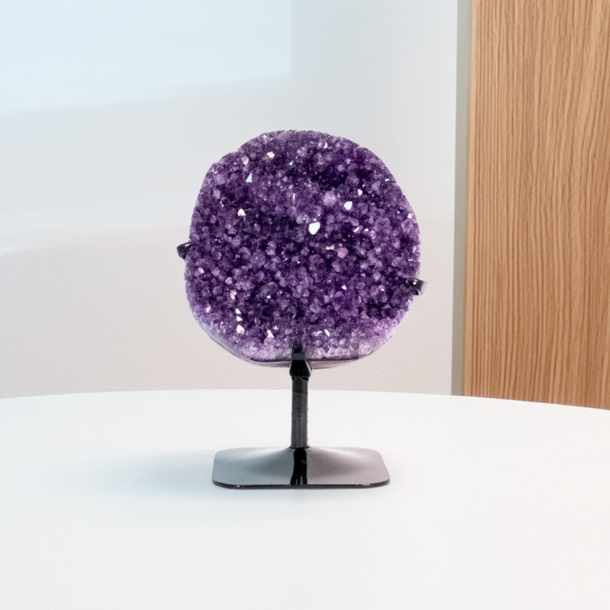 Seja em salas de estar, quartos ou escritórios, a Pedra Drusa Ametista adiciona um charme único e atrai boas energias para o espaço.