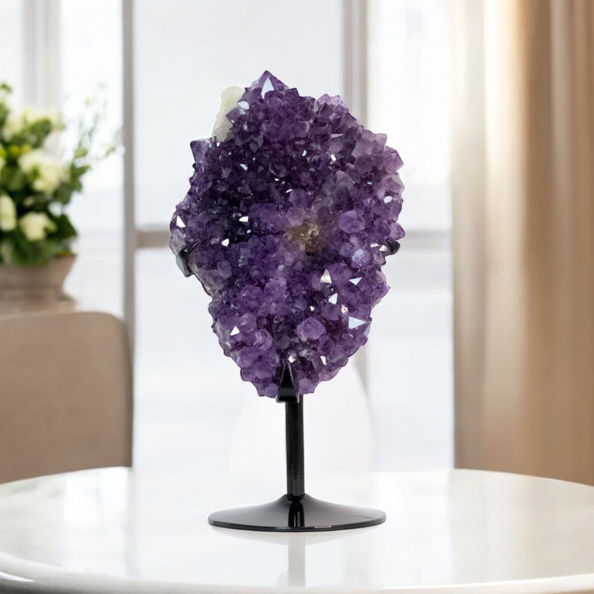 Seja em salas de estar, quartos ou escritórios, a Pedra Drusa Ametista adiciona um charme único e atrai boas energias para o espaço.