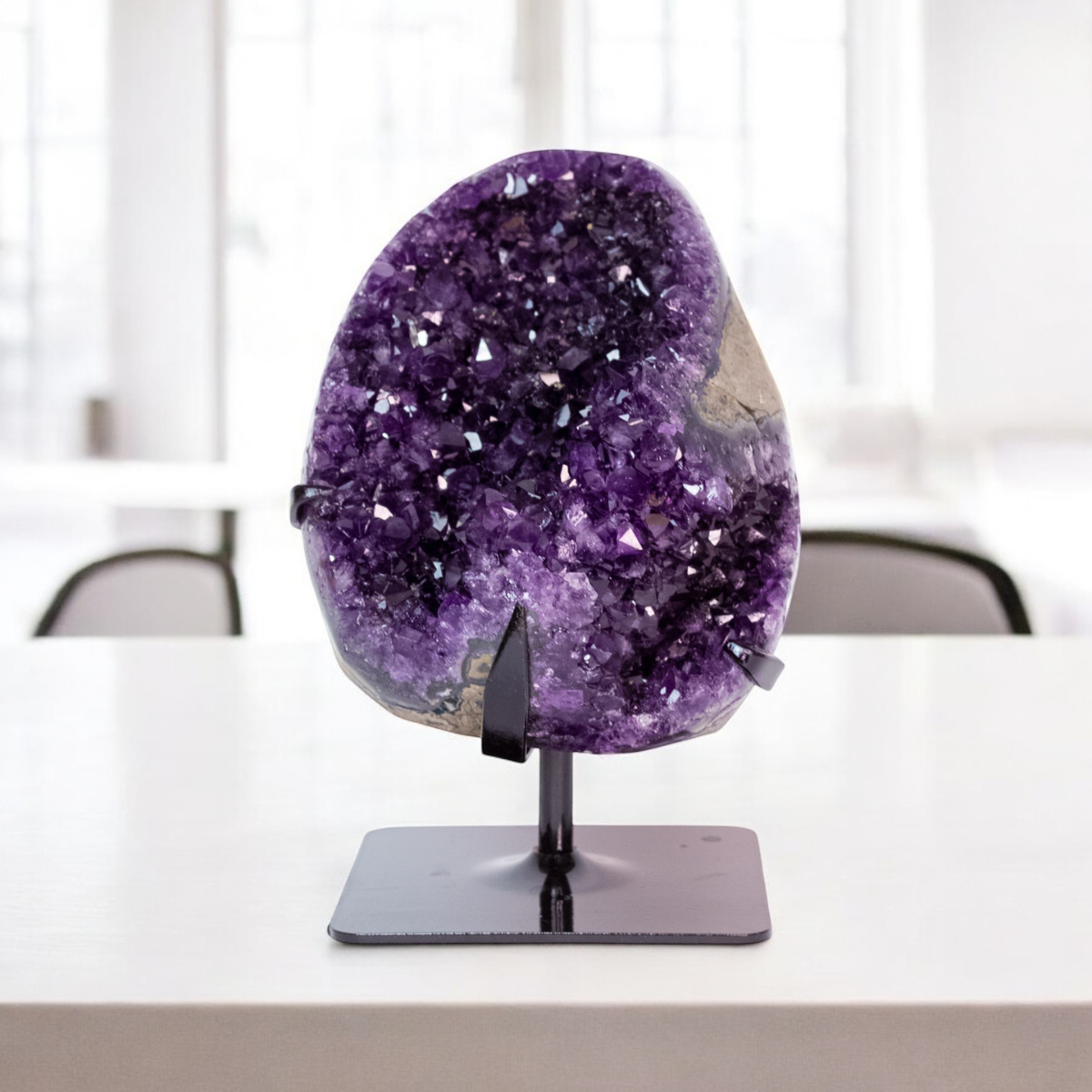 Seja em salas de estar, quartos ou escritórios, a Pedra Drusa Ametista adiciona um charme único e atrai boas energias para o espaço.
