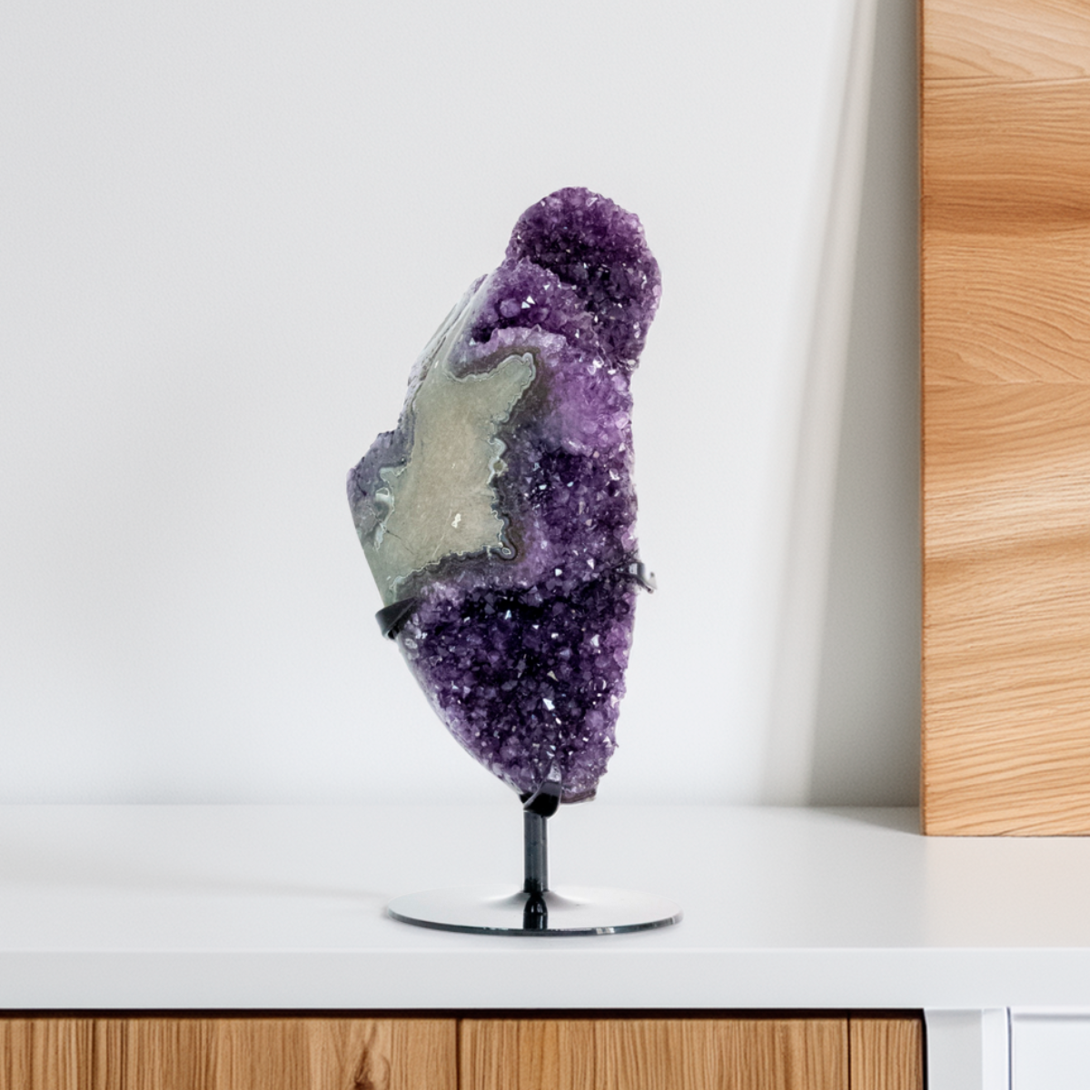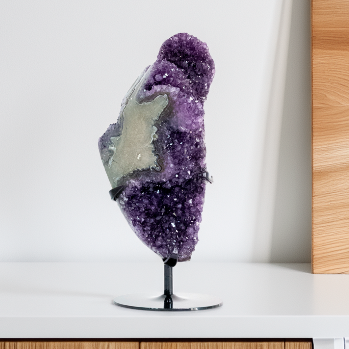 Seja em salas de estar, quartos ou escritórios, a Pedra Drusa Ametista adiciona um charme único e atrai boas energias para o espaço.