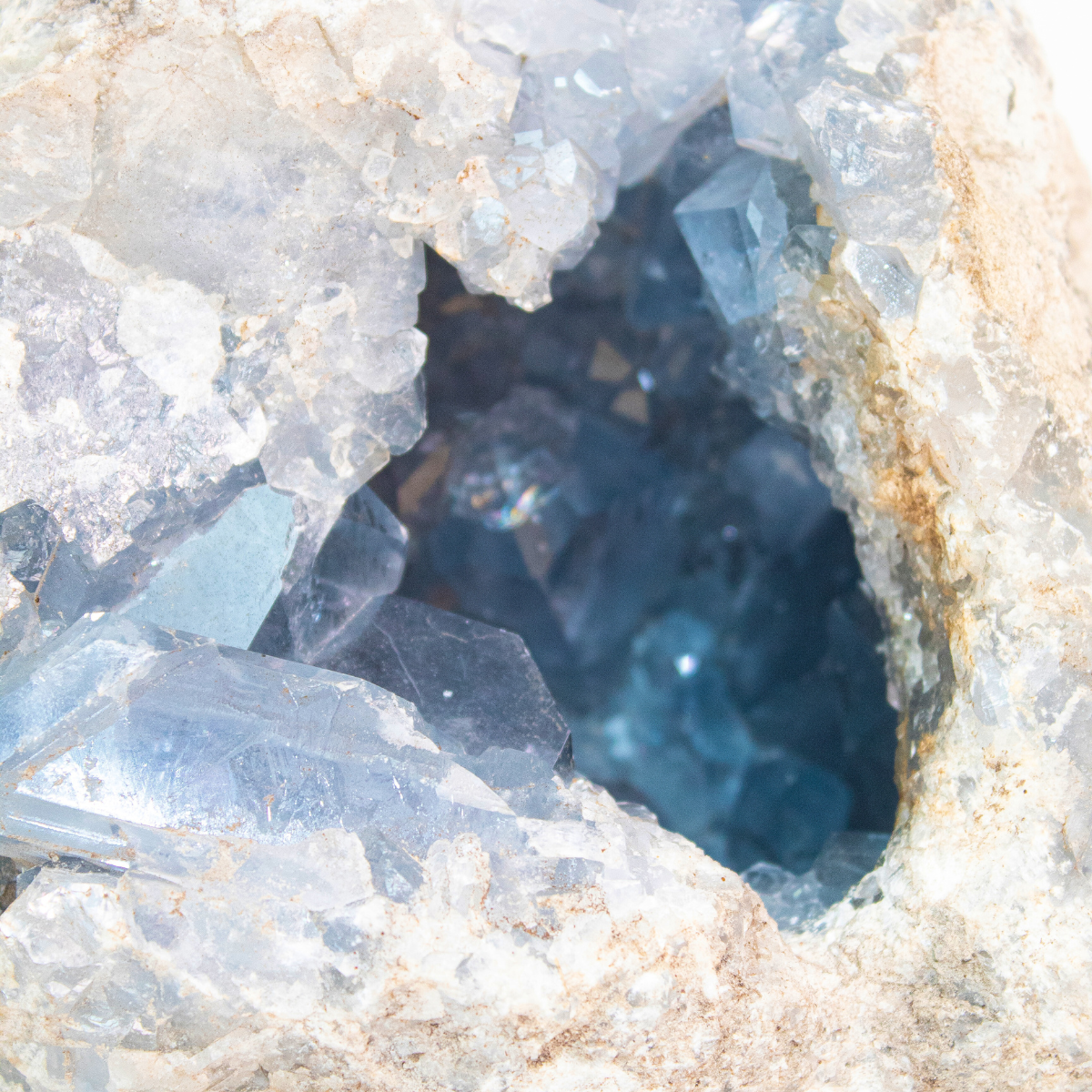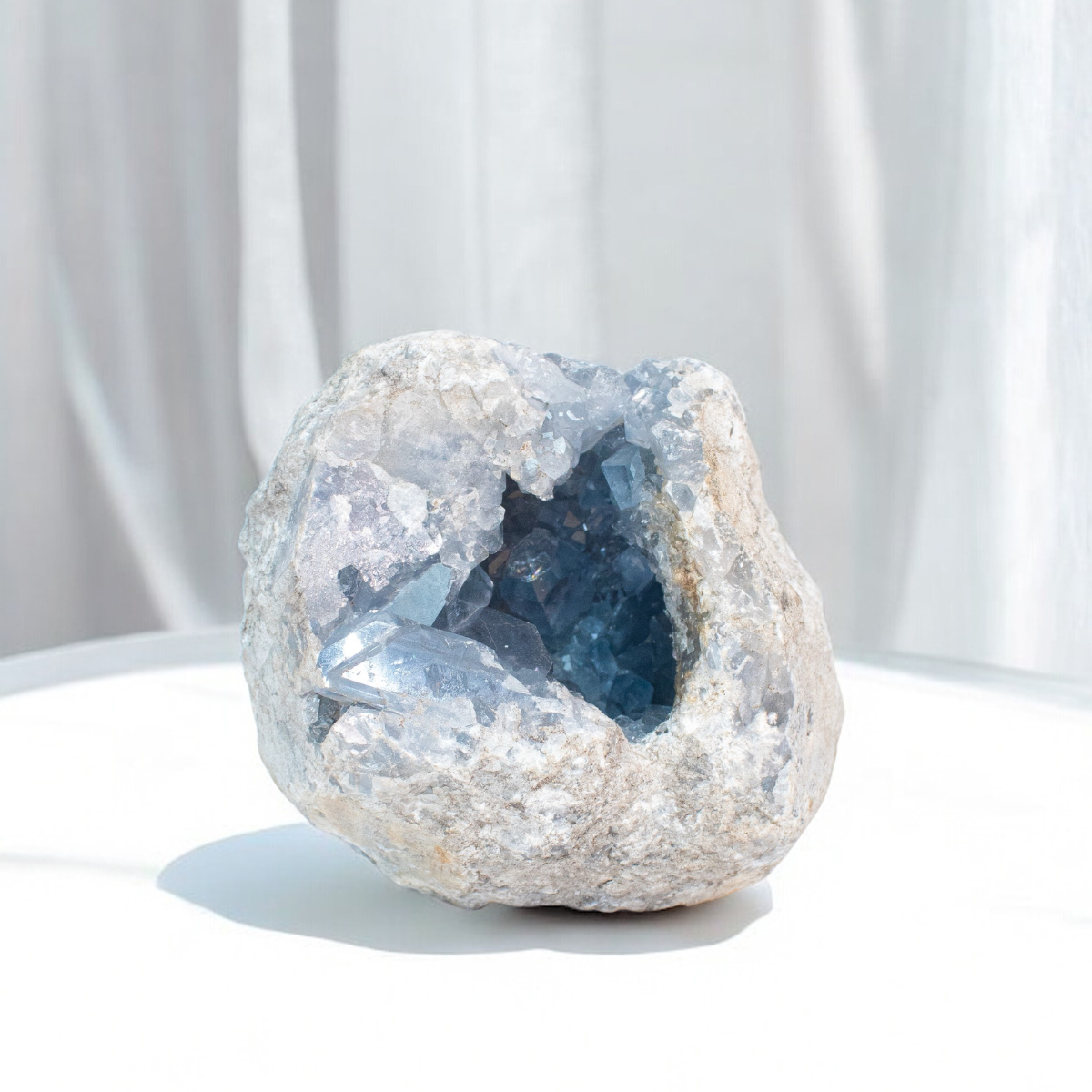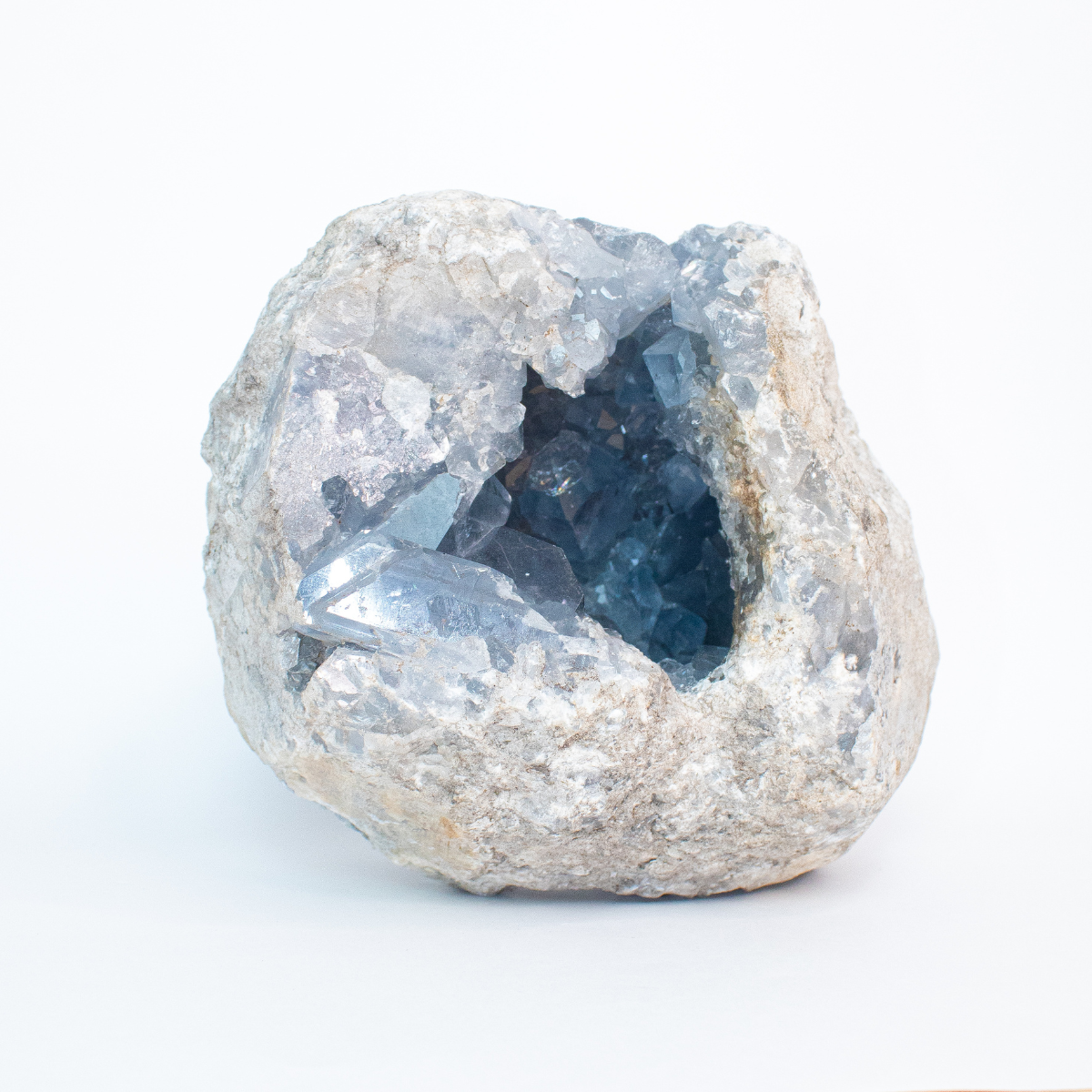 Celestita - Pedra de elevação elevada, é uma Mestra da Nova Era. Imbuídas de energias divinas, ela inspira em nós a paz infinita do mundo espiritual e o contato com o reino angélico. Nos impulsiona a buscar a iluminação. Trata-se de uma pedra muito útil para estimular a comunicação clarividente.
