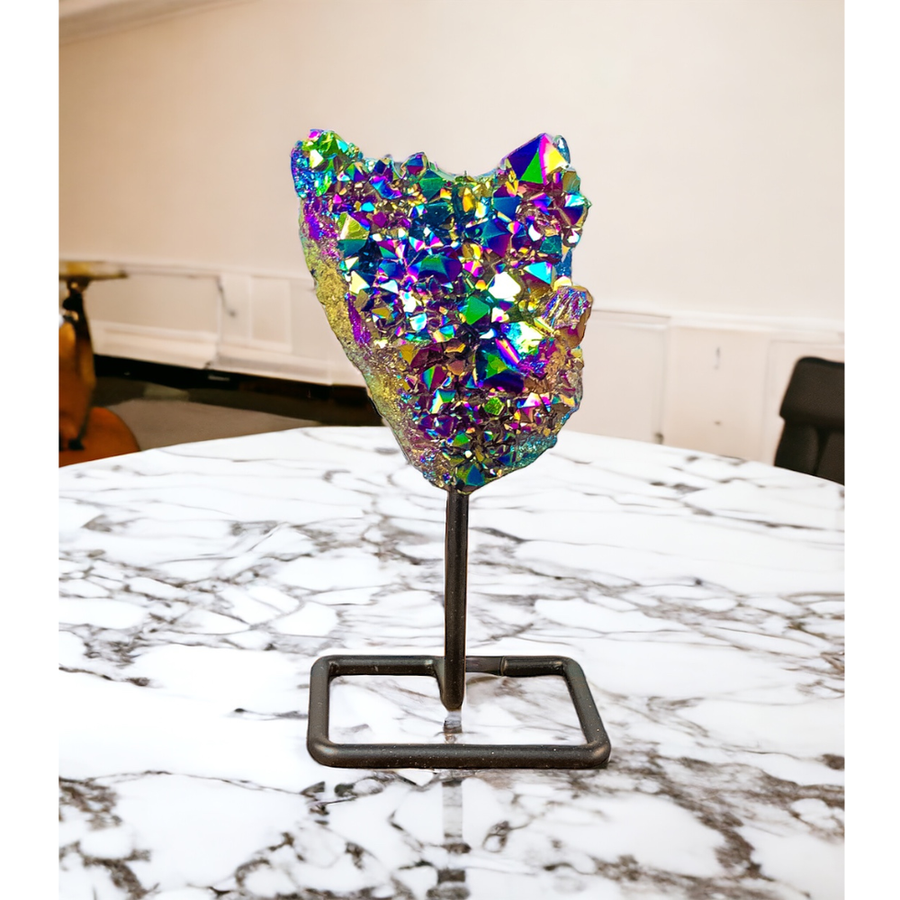 Drusa Titânio Rainbow Com Base De Metal Preta 268 Gramas