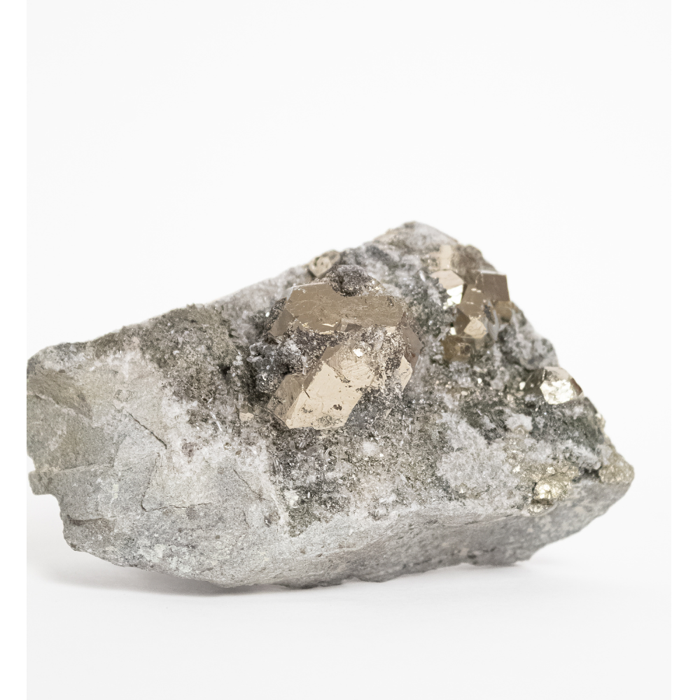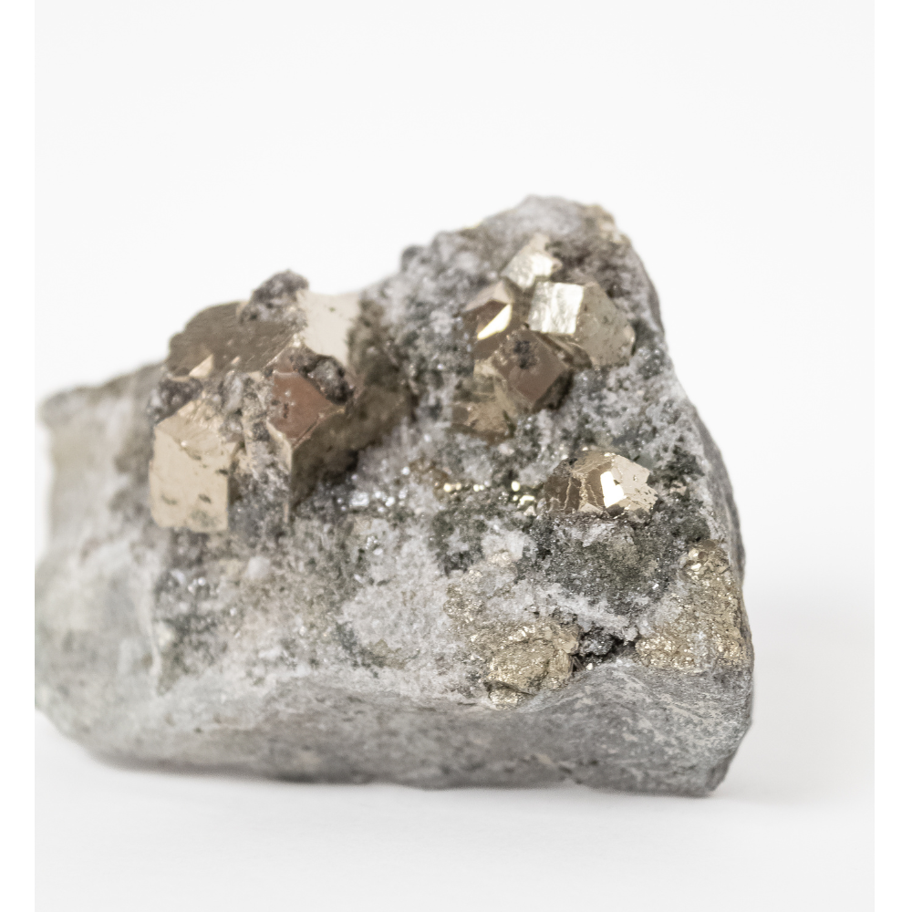 Além de atrair riquezas e bens materiais, a Pirita nos traz um brilho pessoal, nos incentiva, melhora nossa auto-estima, criatividade e ao mesmo tempo é uma pedra de proteção por conter enxofre e ferro na sua composição.