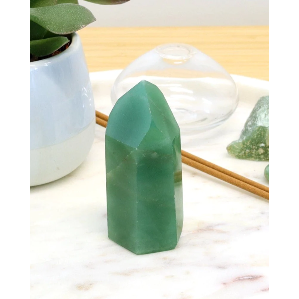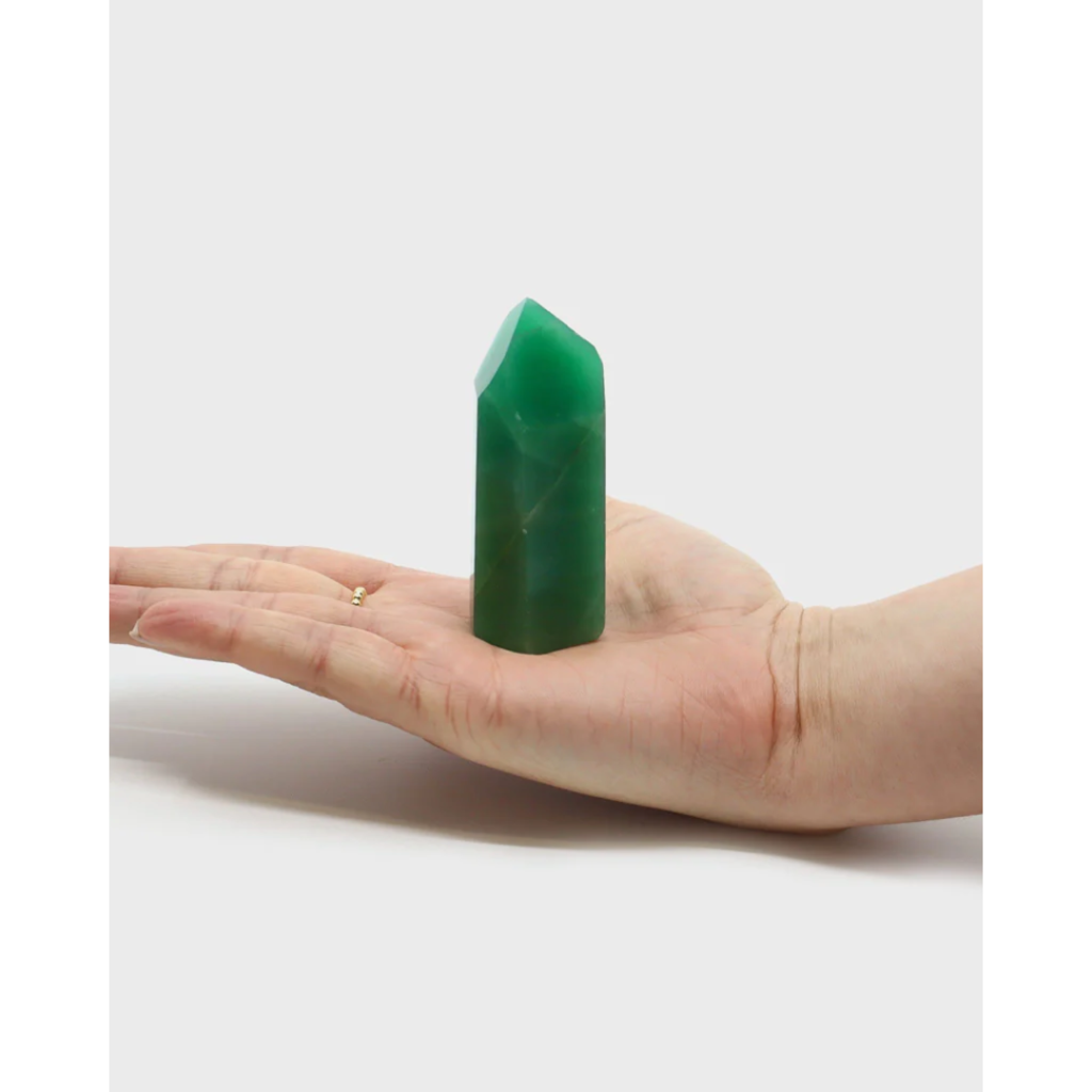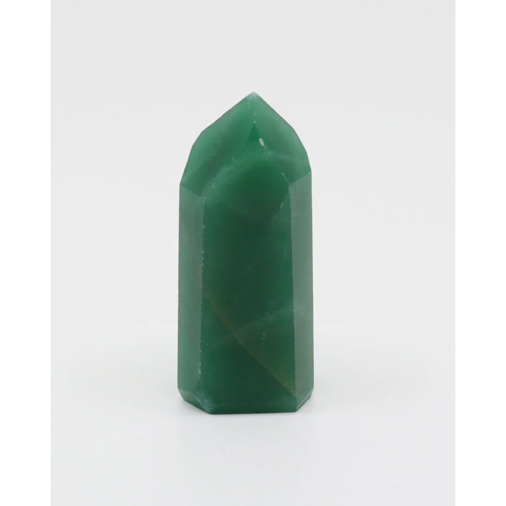 Ponta de Quartzo Verde em pedra natural polida para decoração e energização de ambientes. No formato ponta, esse cristal amplia e emite suas poderosas energias de coragem, otimismo e paz interior através da sua ponta.